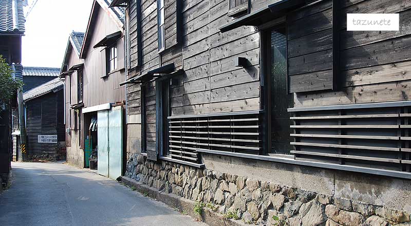 やきもの散歩道は、レンガ煙突や黒塗りの家々が立ち並びます。土管や焼酎瓶がびっしりと埋め込まれた土管坂も見どころ。